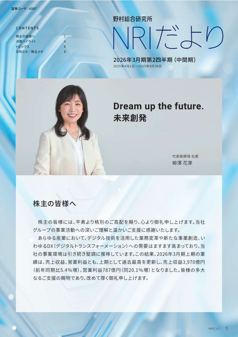 NRIだより 2025年3月期第2四半期(2024年4月1日~2024年9月30日)